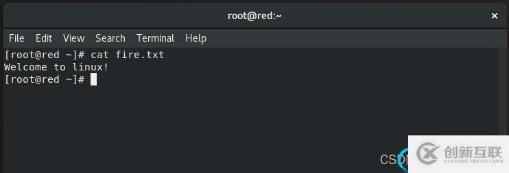 這時(shí)候我們就可以查看文本內(nèi)容了,結(jié)合我們之前講過cat命令,敲擊“cat fire.txt”就可以了。