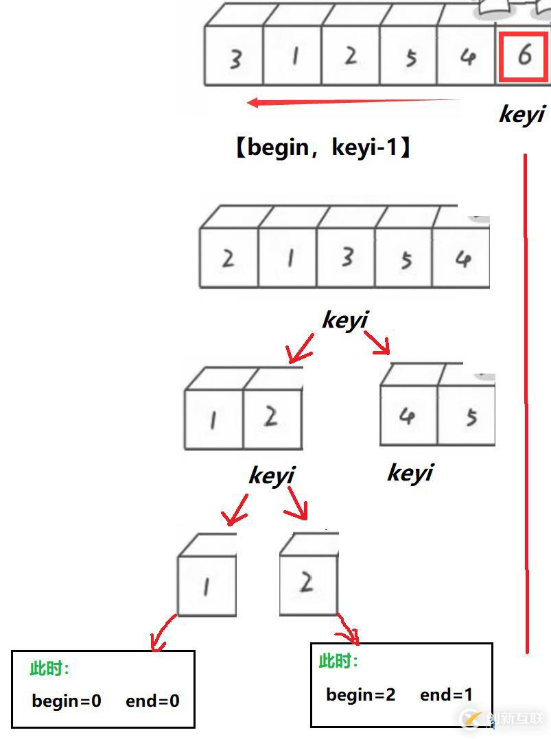 - 劃分為[begin,keyi-1],? keyi,? ?[keyi+1,end].