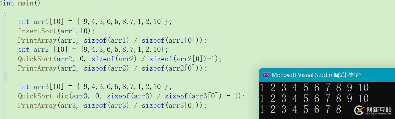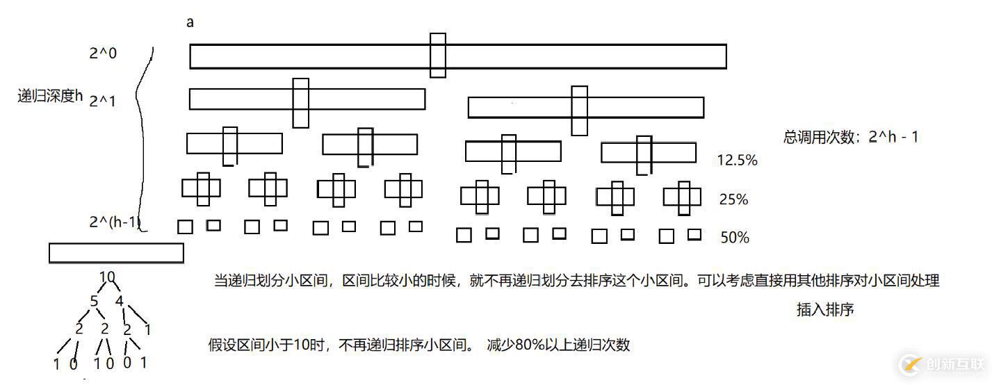 接下來,我們對其進行優化,如果區間數據量小于10,我們就不進行遞歸快速排序了,轉而使用插入排序。