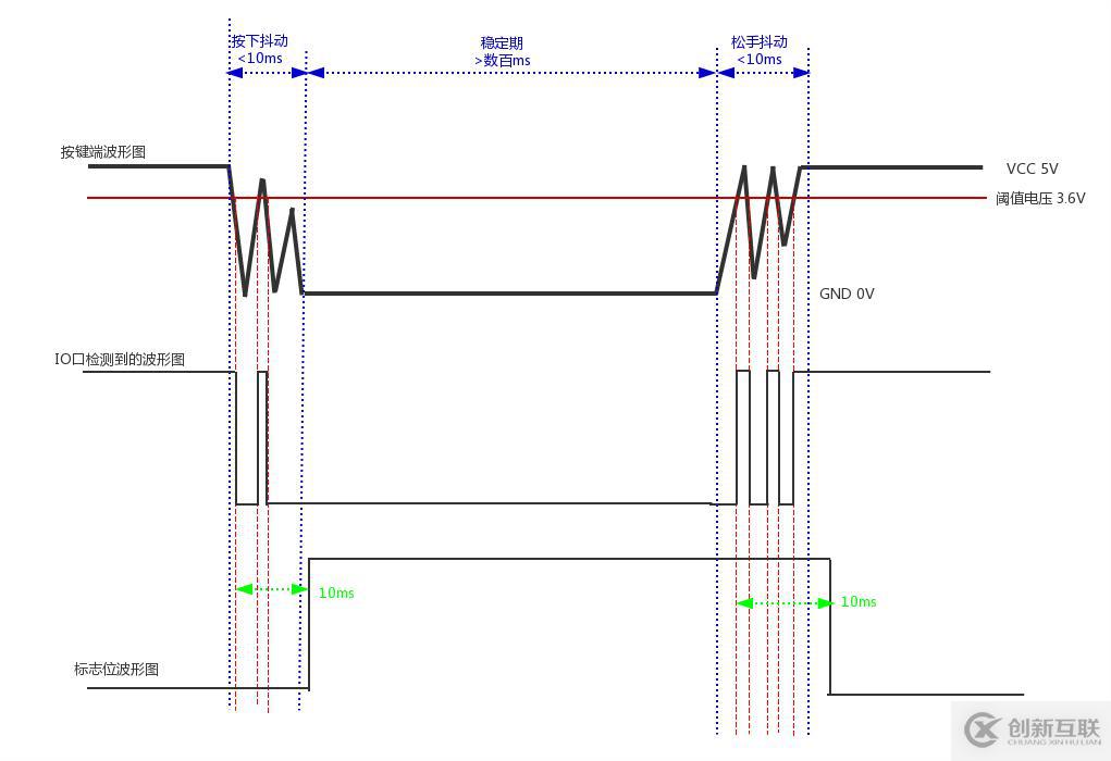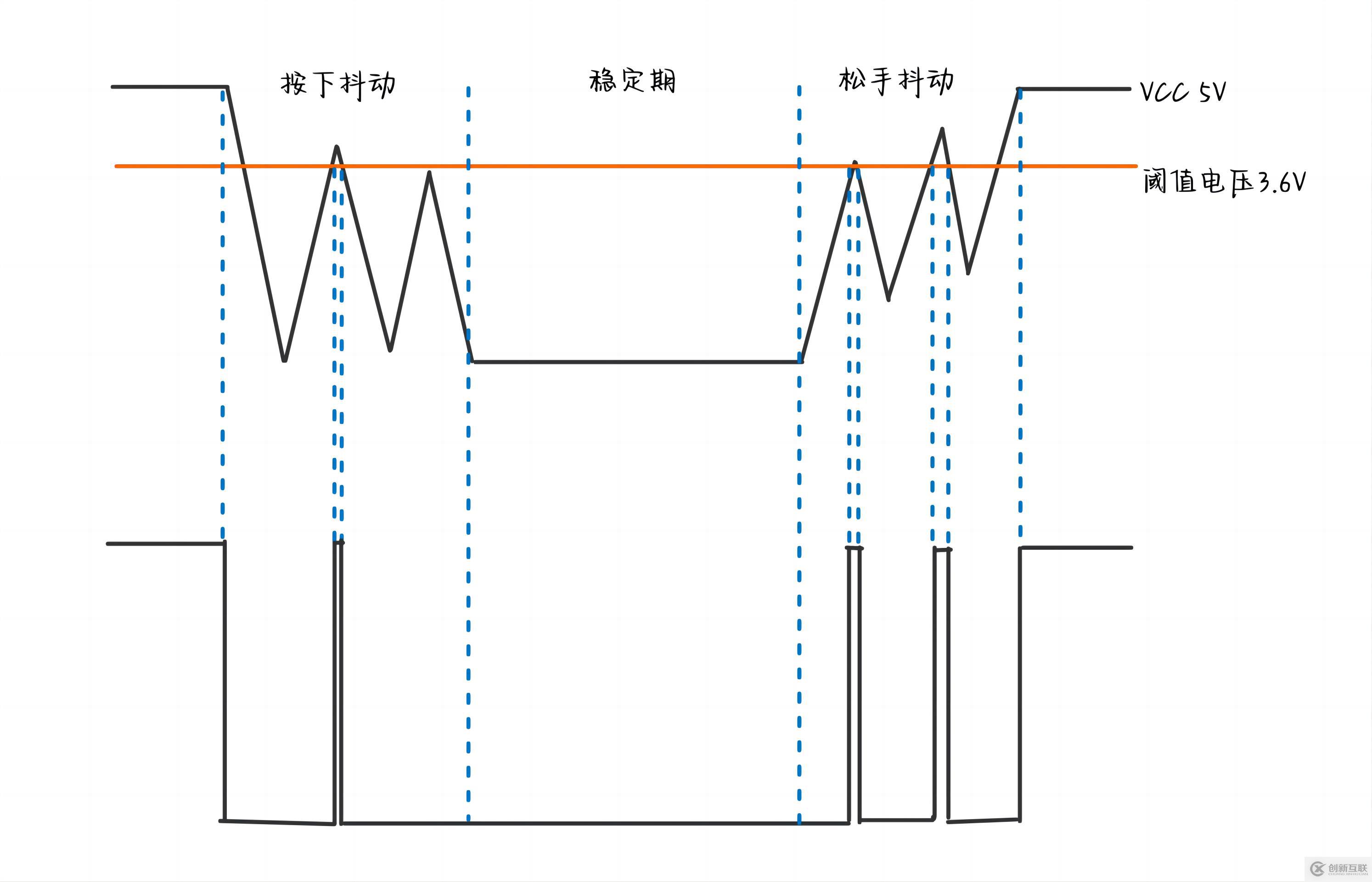 (純手畫,比例不是很對(duì),按下和松手的抖動(dòng)時(shí)間<10ms,穩(wěn)定期>數(shù)百ms)