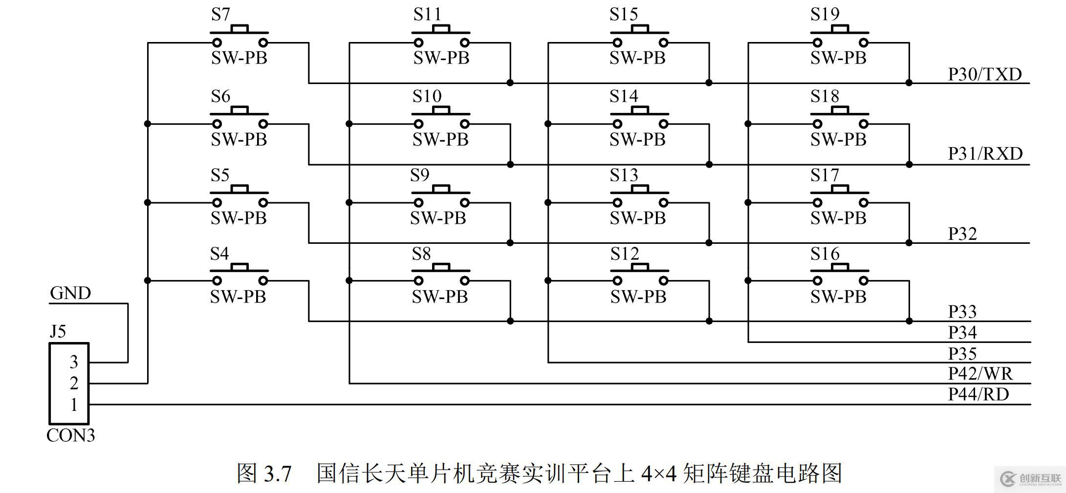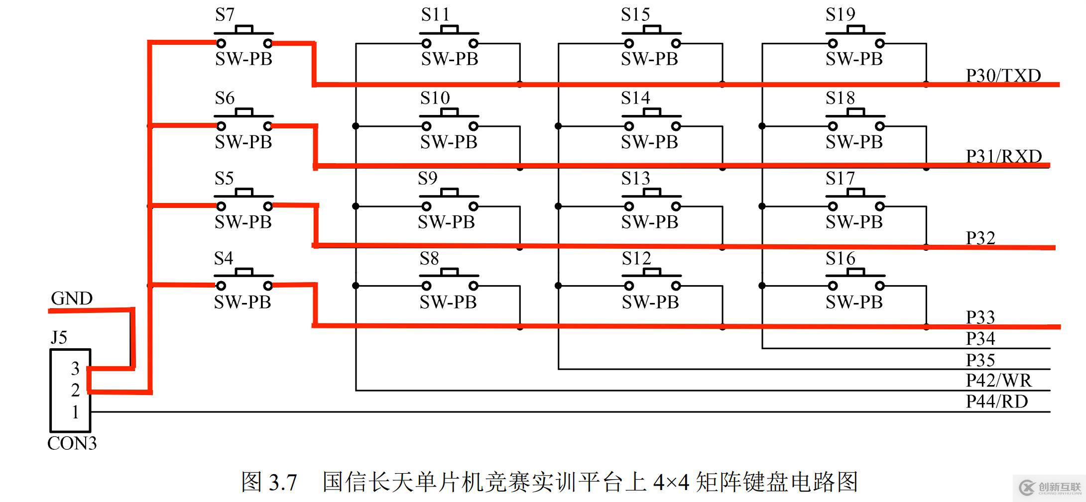創(chuàng)新互聯(lián)公司專注于企業(yè)成都全網(wǎng)營銷、網(wǎng)站重做改版、河池網(wǎng)站定制設(shè)計(jì)、自適應(yīng)品牌網(wǎng)站建設(shè)、HTML5、商城網(wǎng)站建設(shè)、集團(tuán)公司官網(wǎng)建設(shè)、外貿(mào)營銷網(wǎng)站建設(shè)、高端網(wǎng)站制作、響應(yīng)式網(wǎng)頁設(shè)計(jì)等建站業(yè)務(wù),價(jià)格優(yōu)惠性價(jià)比高,為河池等各大城市提供網(wǎng)站開發(fā)制作服務(wù)。當(dāng)J5跳線帽接2,3的時(shí)候?yàn)楠?dú)立鍵盤,接1,2的時(shí)候?yàn)榫仃囨I盤。下圖為獨(dú)立鍵盤的示意圖: