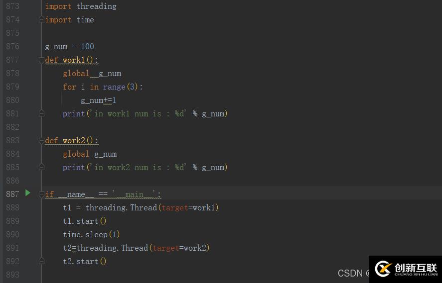 從打印結果可以看出來,全局的變量在work1中做了加法,在work2中打印num的值時顯示的是加法運行之后的值,說明兩個work操作的是同一個變量。從而印證了線程之間的資源是共享的。