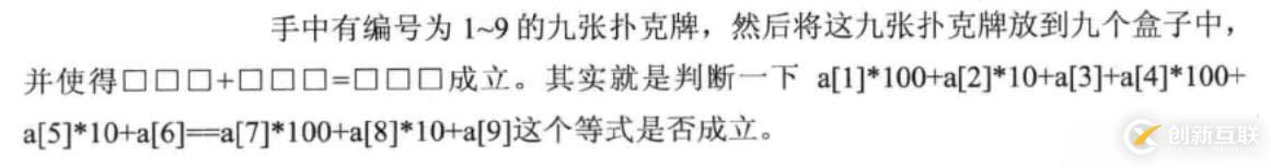 終止條件:9張撲克牌都已放好,該放第10張撲克牌了。但是在輸出結果時要判斷等式是否成立