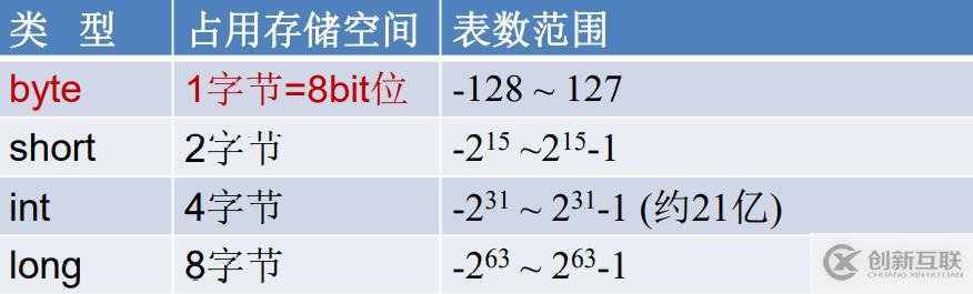 //1. 整型:byte(1字節(jié)=8bit) \ short(2字節(jié)) \ int(4字節(jié)) \ long(8字節(jié))