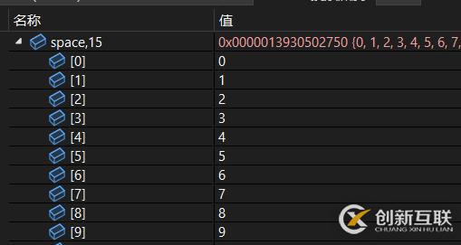 }在上述代碼中我們可以看到 malloc 申請了一塊大小為 sizeof (int)*10 的地址空間,在調試窗口中可以看到這一塊空間存儲的都是 0 或者隨機數,當我們在 for 循環的中訪問到第十一個 int 空間時,代碼沒有報錯,繼續訪問,也有可寫權限;
