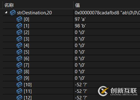 在調試過程中,也是發現定義一個大小為 10 的數組,在沒有數據的位置都是以 ' \0 ' 的形式存在的,而沒有分配的地址空間是以 -52'?' 的形式存在,可見是不合法的;但是在 my_strcpy 的過程中 str 訪問到了沒有被分配的地址空間,編譯器也沒有報錯,仍舊繼續進行訪問;