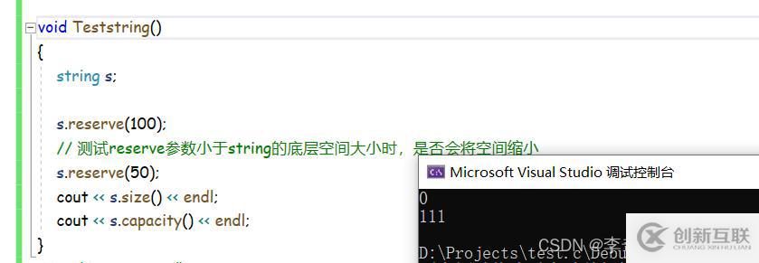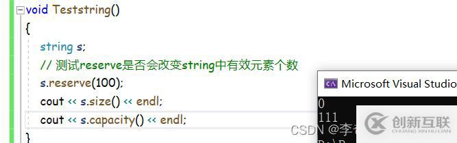 // 測試reserve是否會改變string中有效元素個數(shù)