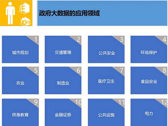 政府大數據在國內外都有很多的應用案例和實踐,當然,因為政府數據的采集和開放、跨領域應用等問題,政府大數據的應用還只是起步階段。隨著政府大數據信息不斷規范、采集的不斷精準、信息量的不斷開放,將促進政府大數據的更多特色和深度應用。