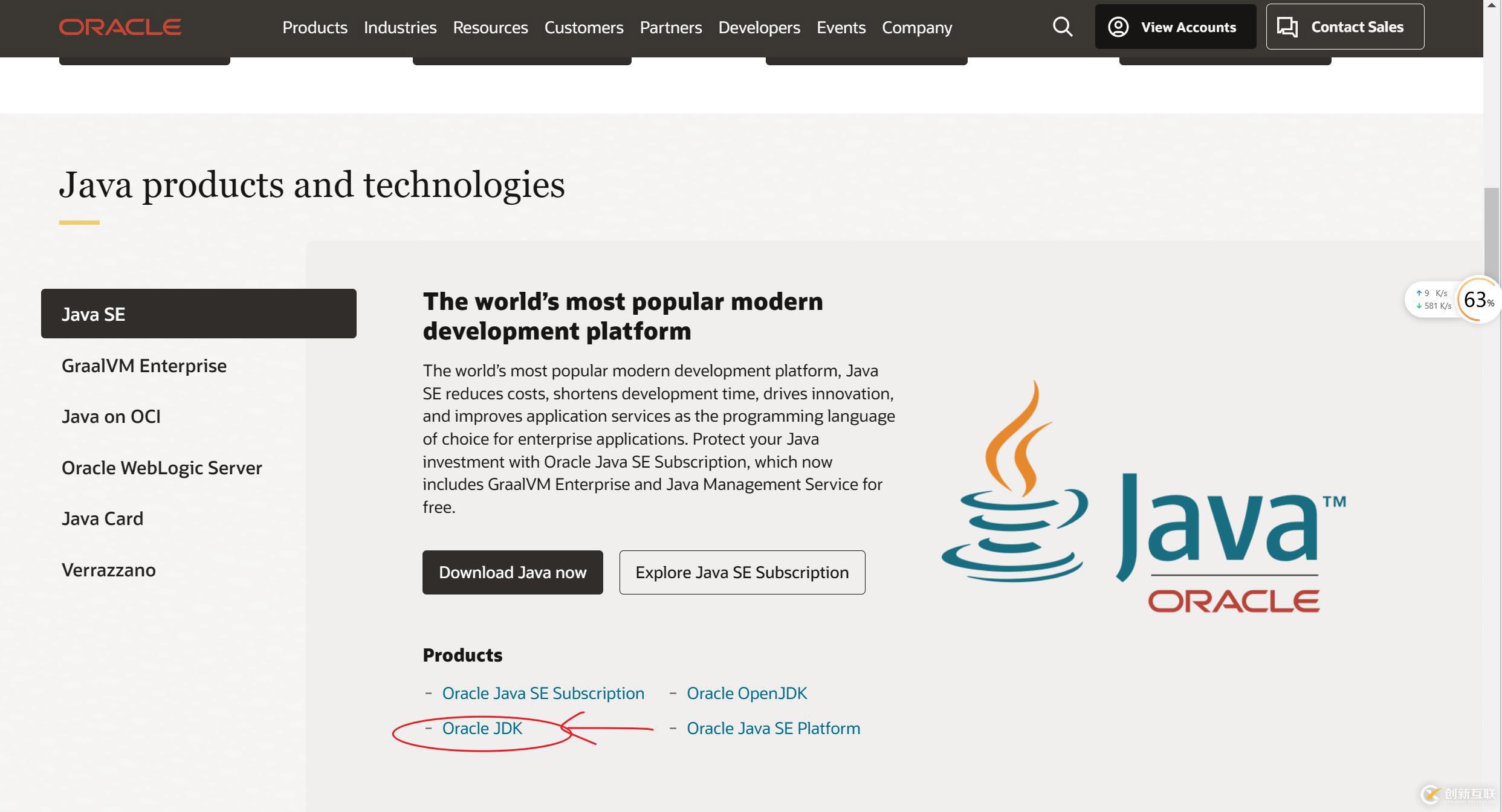 ① 搜索:Oracle官網(wǎng),找到如圖,點擊進入