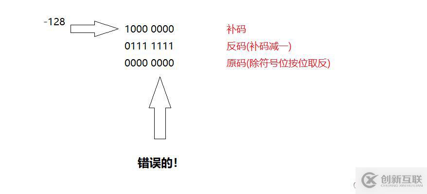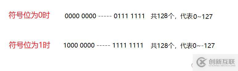 按照以上分析,那么我們字符型變量的取值范圍就是[-127,127]嗎,實則不然。細心的小伙伴可能會發現,無論是上面還是下面,都有0這個數據的表示方式,分別為0000 0000和1000 0000;而在計算機中,我們當然不能讓0有兩種表示方式,否則會引起歧義。因此我們將0000 0000來表示0。而前面我們說過,計算機絕對不會浪費任何一種組合,所以,我們還需對1000 0000進行定義,賦予其意義。