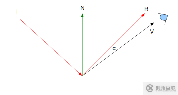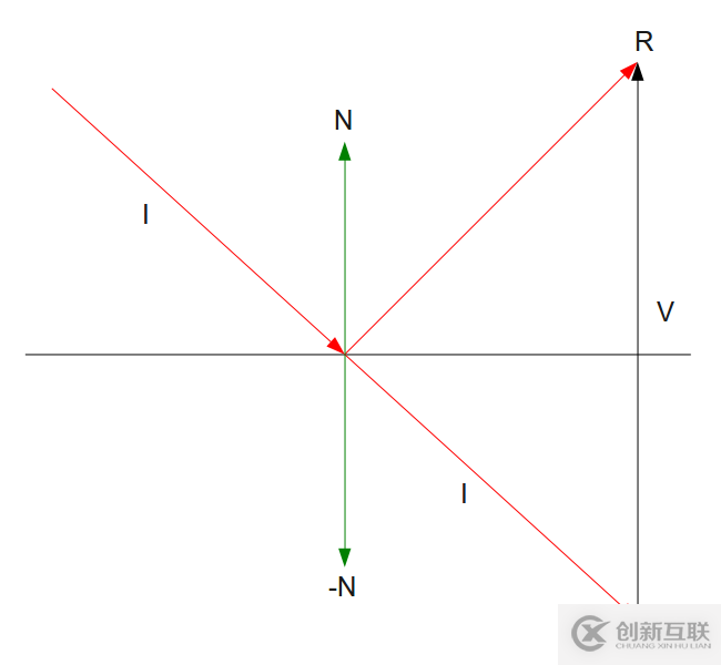 'R' 反射光,和入射光'I'關(guān)于法線對稱,但方向相反