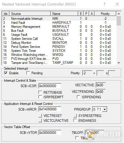 其他窗口如NVIC窗口,可以觀(guān)察所有中斷的狀態(tài)。