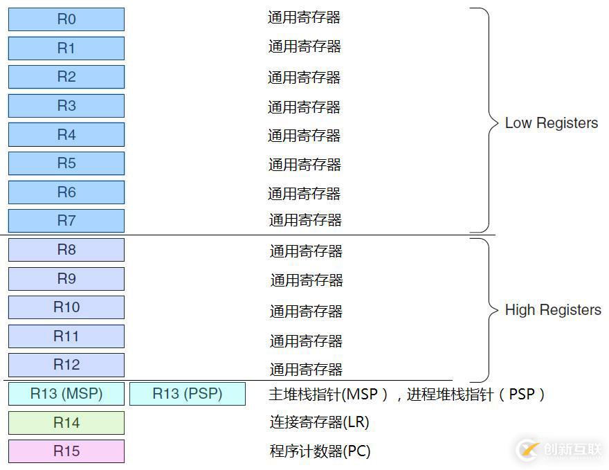 1.內(nèi)核寄存器;其中R0-R7也被稱(chēng)為低組寄存器,可以被所有指令使用;R8-R12也被稱(chēng)為高組寄存器,只能被32bit使用,不能被16bit指令使用;R13堆棧指針寄存器;R14連接寄存器,用于在調(diào)用子程序時(shí)存儲(chǔ)返回地址;R15為程序計(jì)數(shù)器,在匯編代碼中一般我們都都叫它的外號(hào)“PC”。因?yàn)镃M3內(nèi)部使用了指令流水線(xiàn),讀PC時(shí)返回的值是當(dāng)前指令的地址+4。通過(guò)這些寄存器組可以迅速定位到出錯(cuò)的程序的位置,無(wú)須在界面5里面打斷點(diǎn)自己慢慢找。