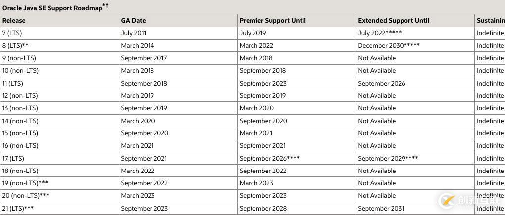 Oracle Java SE支持路線圖