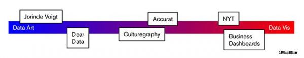我認(rèn)為一些數(shù)據(jù)可視化項(xiàng)目像是第三類:作為設(shè)計(jì)問題考慮太過藝術(shù)化。但是作為藝術(shù)考慮和評(píng)價(jià)又太過刻意設(shè)計(jì)(例如數(shù)據(jù)新聞)。他們想要一次成為一切。而確實(shí),數(shù)據(jù)藝術(shù)和數(shù)據(jù)可視化現(xiàn)在混在一起:在書中,在會(huì)議中,在客戶思維模式中,在創(chuàng)意路徑中。