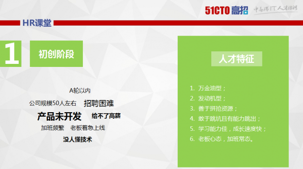 初創階段的技術老大需要具備以下特征能夠親自上陣寫代碼;超強的項目管理能力,保證如期交付;抗壓能力強;懂產品的技術,在招聘的過程中一定要CEO親自去招或者去面。多參加技術沙龍活動,接近他們了解他們拿下他們。