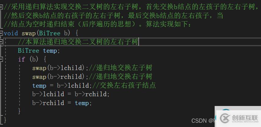 //采用遞歸算法實現交換二叉樹的左右子樹,首先交換b結點的左孩子的左右子樹,