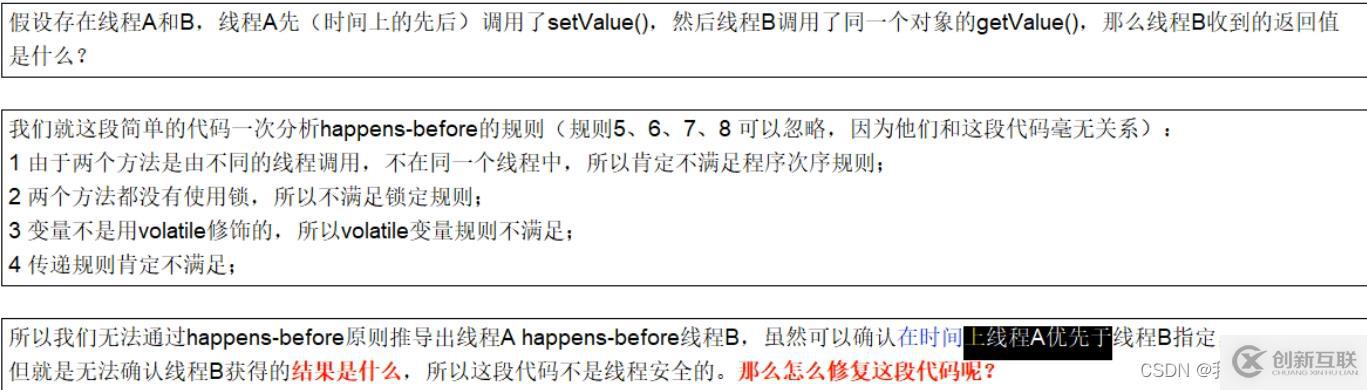 JMM規(guī)范下,多線程先行發(fā)生原則hapens-before在jmm中,如果一個操作執(zhí)行的結(jié)果需要對另一個操作可見性或者代碼重排序,那么這兩個操作之間必須存在happens-before 先發(fā)生原則。邏輯上的先后關(guān)系 例子如下圖