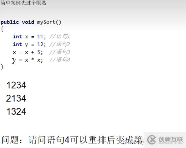 jvm能根據(jù)處理器性能適當對機器指令進行重排序,使機器指令能夠符合cpu的執(zhí)行特性,大限度的發(fā)揮機器性能。但是指令重排可以保證串行語義一致,但沒有義務(wù)保證多線程之間的語義也一致(即可能產(chǎn)生臟讀),簡單的說,兩行以上不相干的代碼在執(zhí)行的時候有可能先執(zhí)行的不是第一條,不見得是從上到 下順序執(zhí)行,執(zhí)行順序是可以被優(yōu)化的。