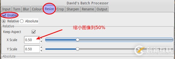 然后到“Resize”選項卡里面調整大小,比如我這里是調節到原圖大小的50%