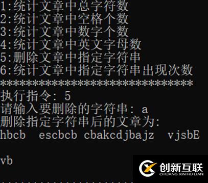 printf("5:刪除文章中指定字符串??????? \n");