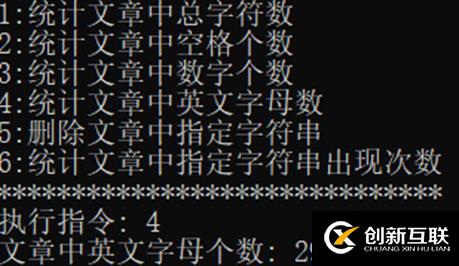 printf("4:統(tǒng)計(jì)文章中英文字母數(shù)??????? \n");