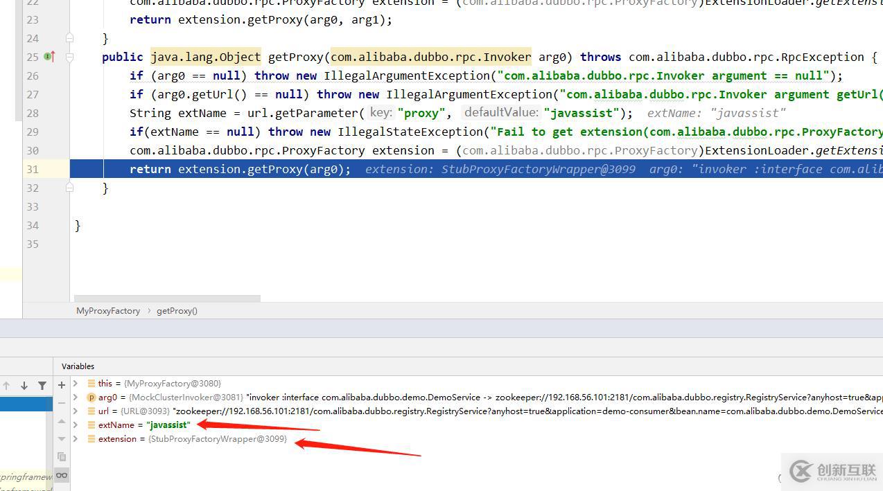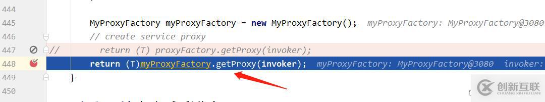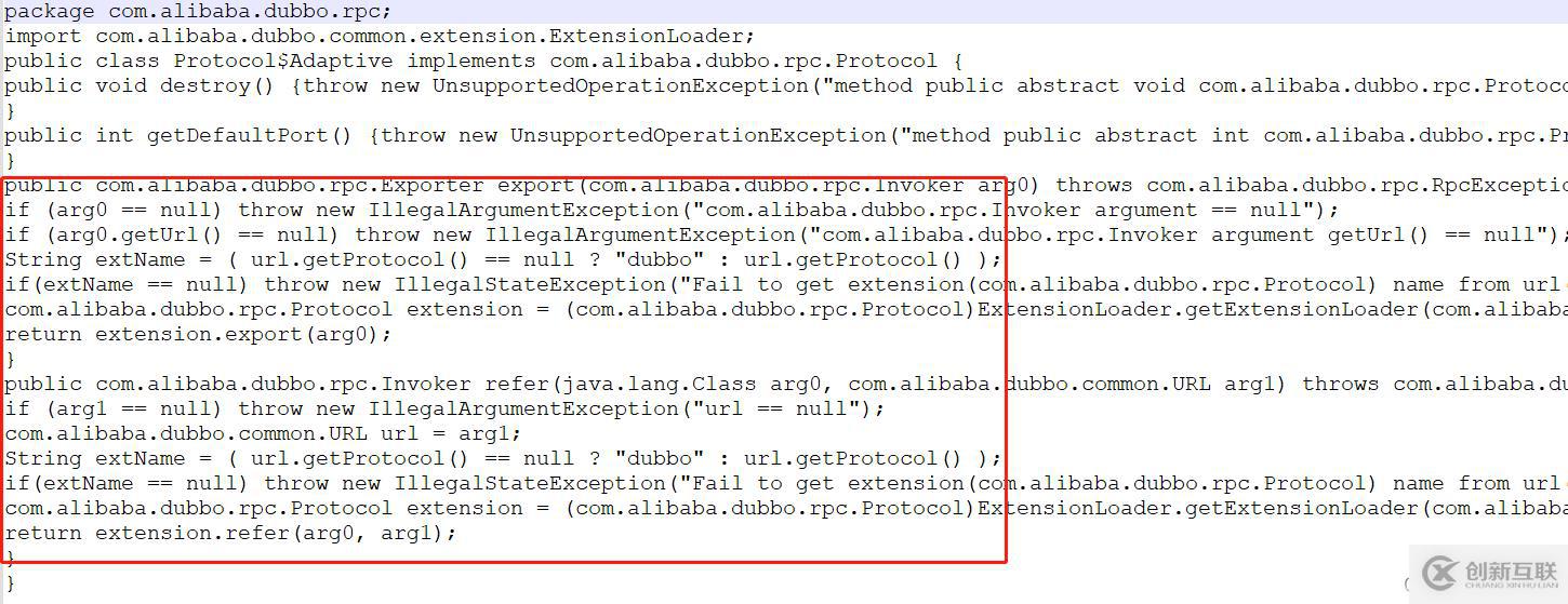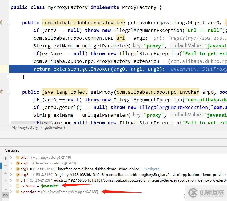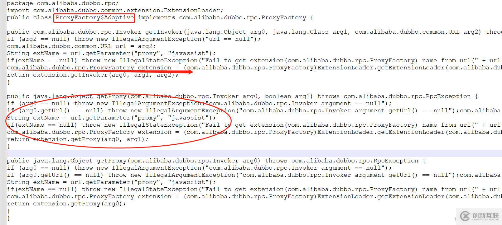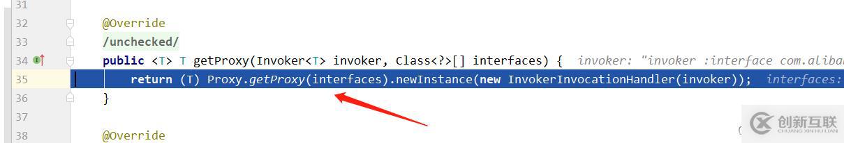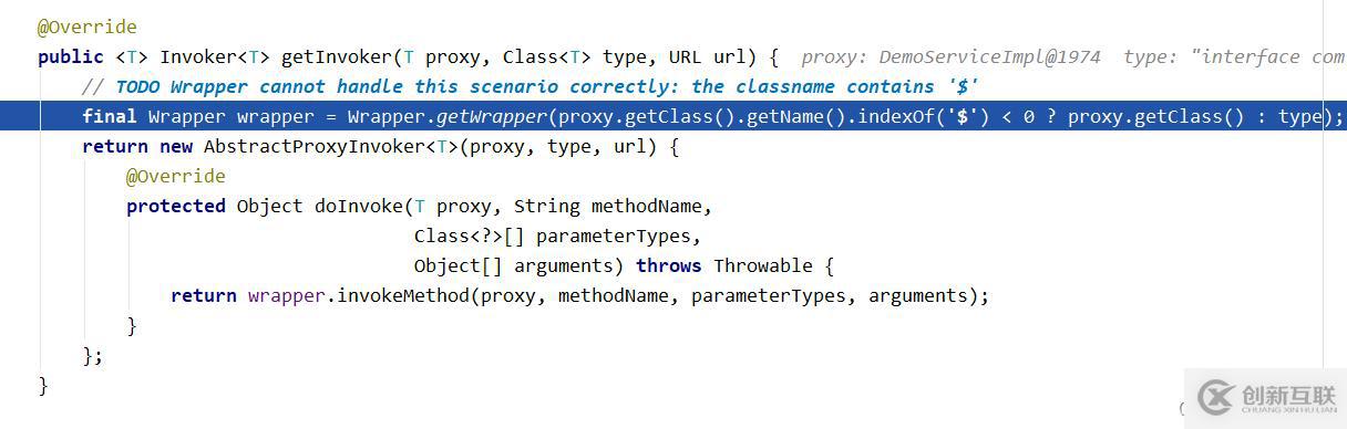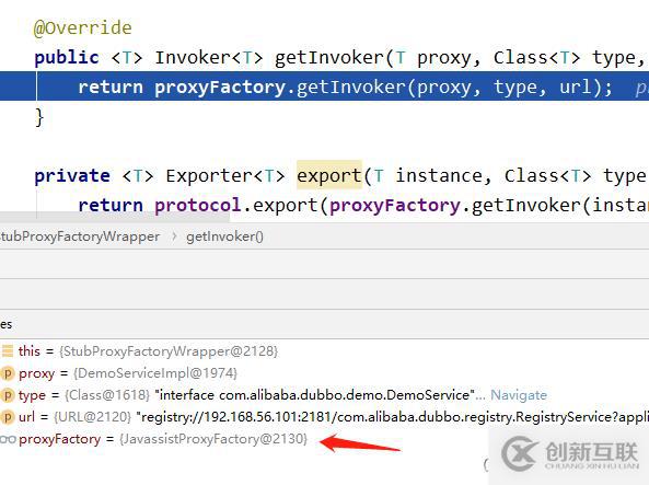 在之前的服務發布過程中,我們已經帖出了proxyFactory的相關代碼(dubbo這里做了動態加載,不利于調試,咱們做個替換)