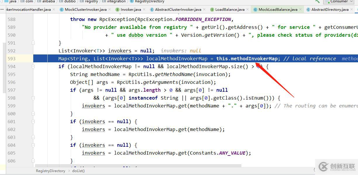 最終的Invoker尋找在RegistryDirectory里面維護的一個字段:methodInvokerMap里面查詢即可