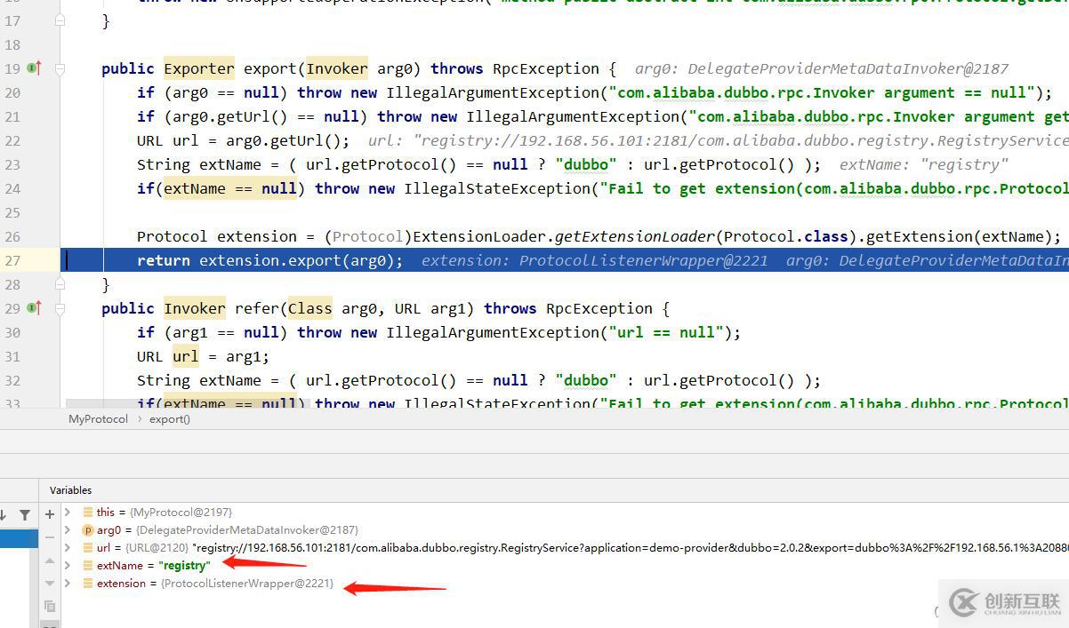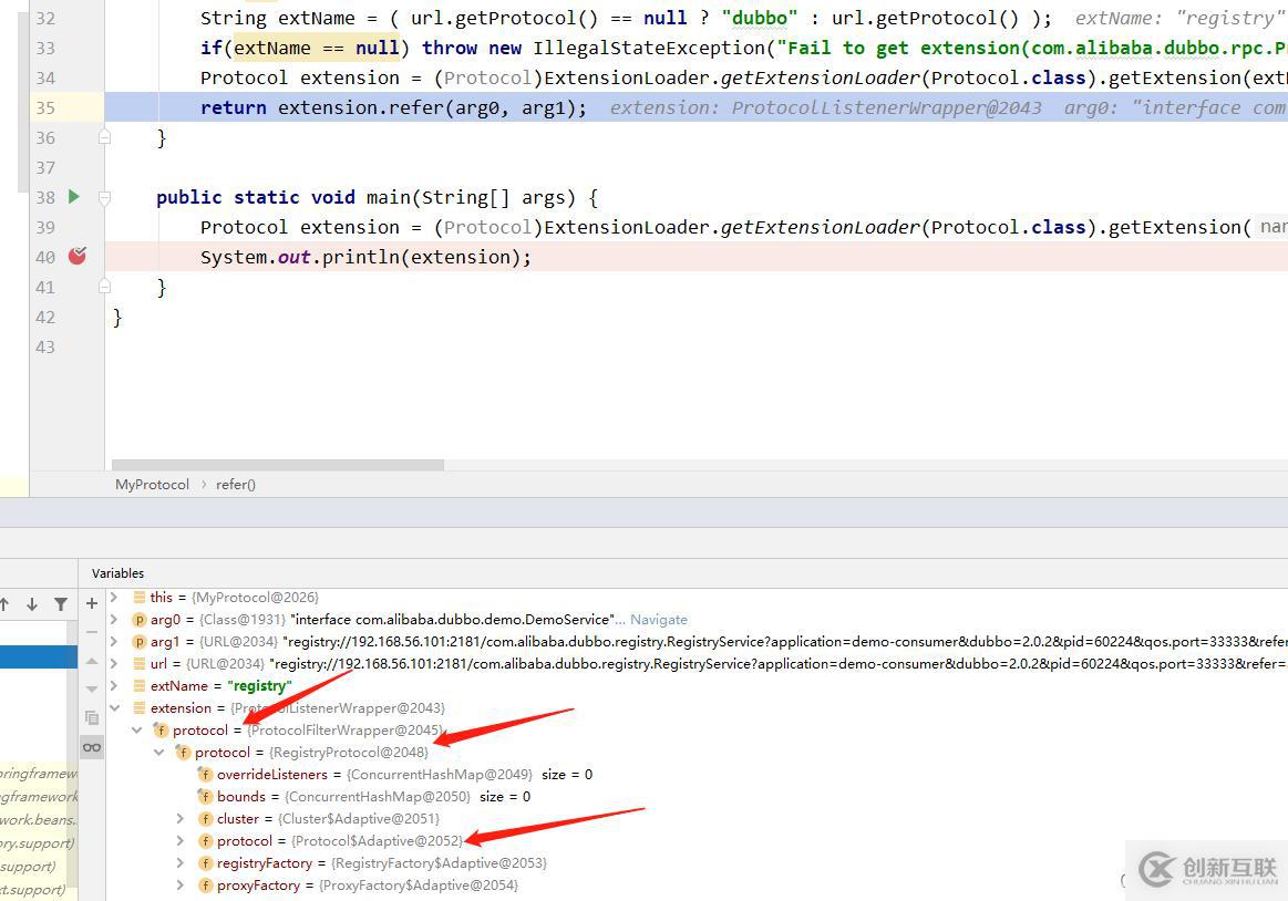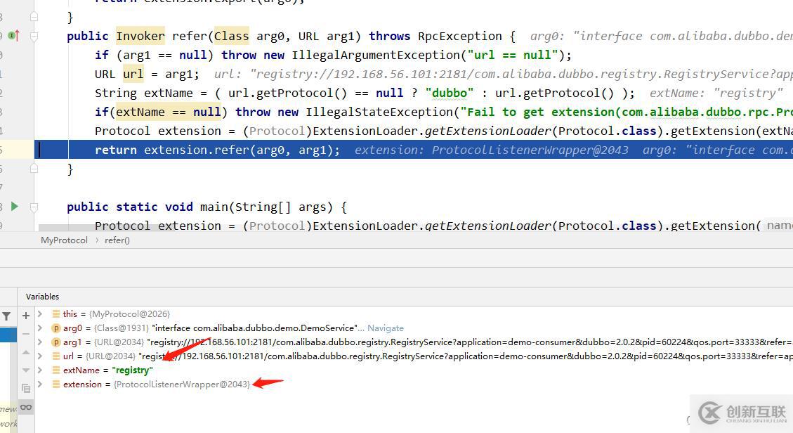 和服務發布過程一樣,extName是registry,獲取到的實例卻是:ProtocolListenerWrapper(裝飾器模式)