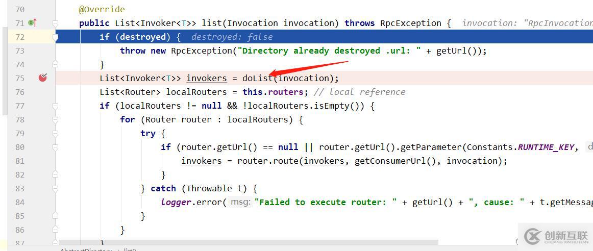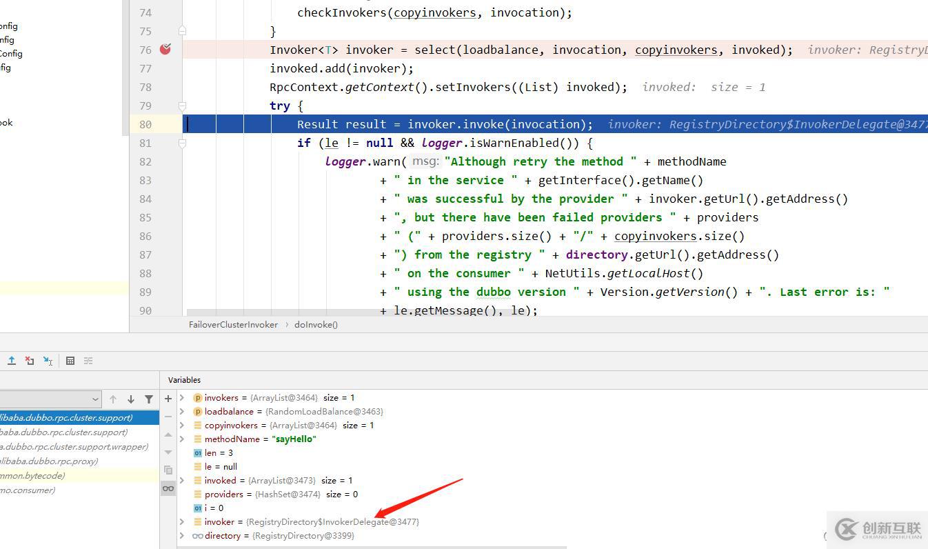 這里選擇了:RegistryDirectory$DeleteInvoker其實就是一個InvokerWrapper