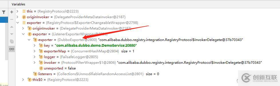 其中DubboExporter是在DubboProtocol類中構造的,還是和之前一樣,通過裝飾器,一層一層遞進構造的: