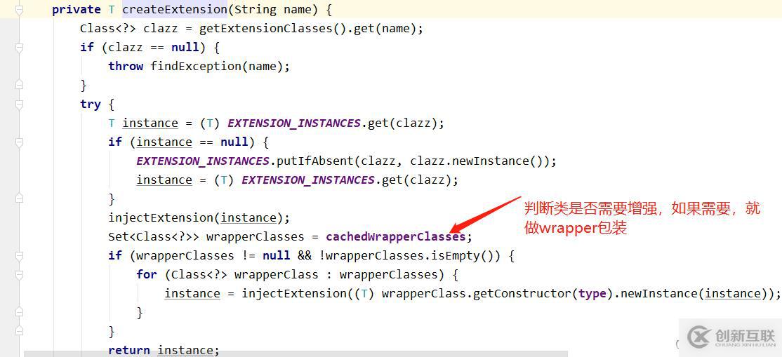 cachedWrapperClasses的寫入是在讀取指定路徑的文件時寫入的,通過判斷加載的類是否有,包含相同接口的構造器做判斷的: