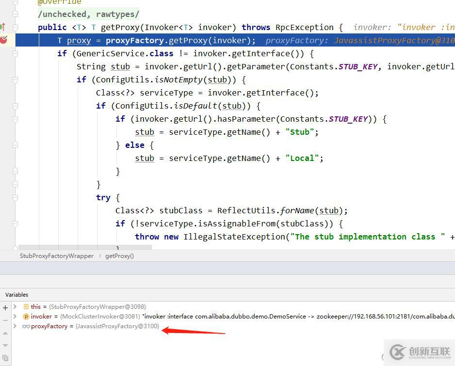 想一下,為什么extName是javassist,獲取到的ProxyFactory卻是:StubProxyFactoryWrapper?按照之前說的SPI機制,應該獲取的是:JavassistProxyFactory?