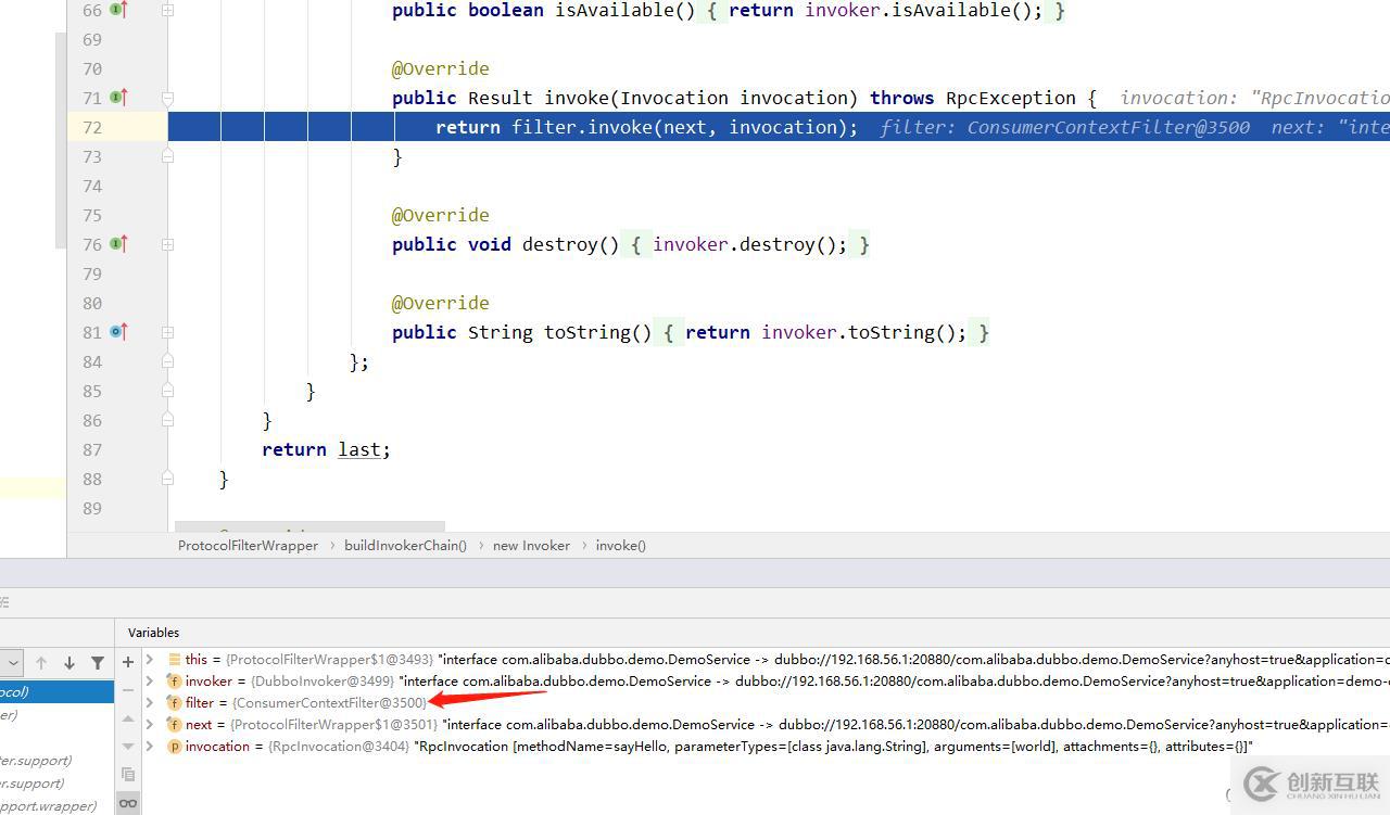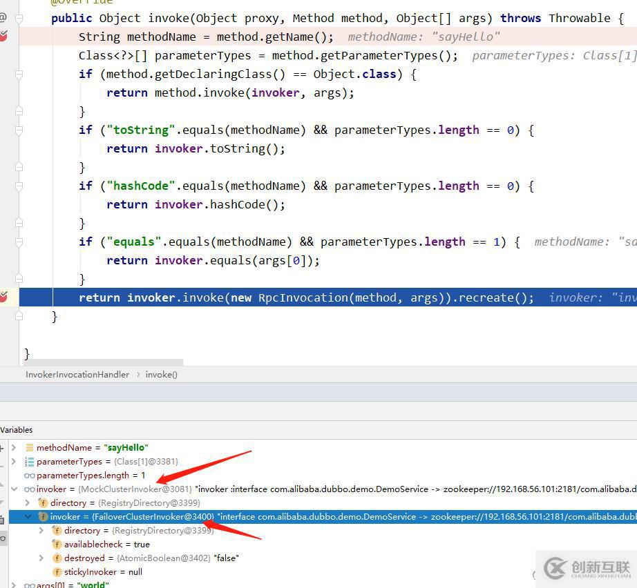 由截圖可知,在InvokerInvocationHandler里面真正調用就是使用invoker調用邏輯