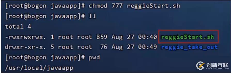 第二步:將資料中提供的reggieStart.sh文件上傳到服務器B,通過chmod命令設置執行權限