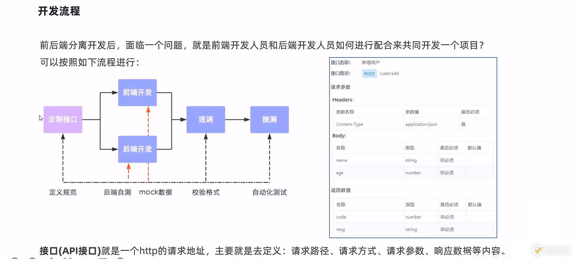 前后端分離開發后,面臨一個問題,就是前端開發人員和后端開發人員如何進行配合來共同開發一個項目?可以按照如下流程進行: