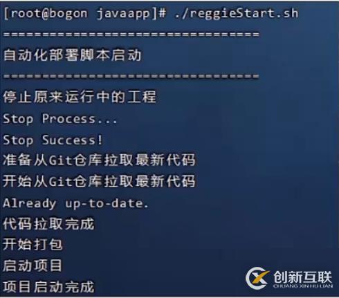 echo 項目啟動完成第三步:執行reggieStart.sh腳本文件,自動部署項目