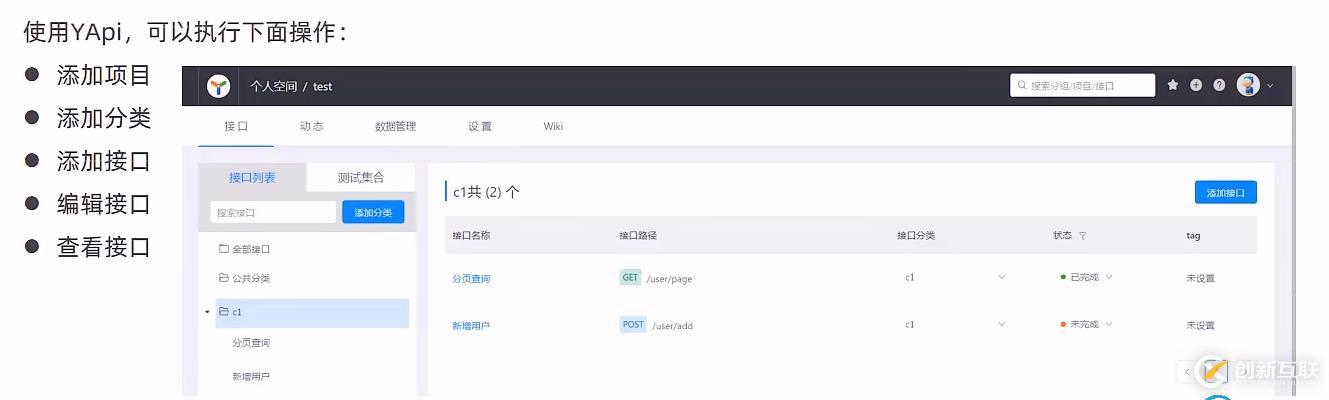 使用使用YApi可以執行下面操作