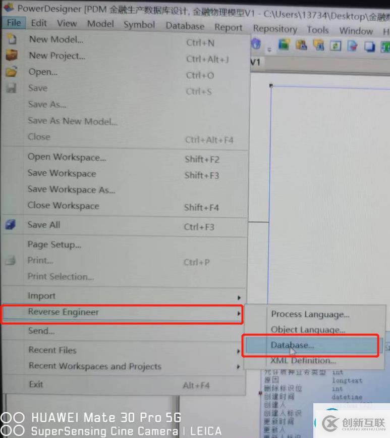 使用sql生成PhysicalDiagram的數據表模型1、選擇“file-Reverse Engineer-Database”