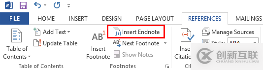 正確的插入文件的方法應該是:將光標置于引用的文字之后,點擊Ribbon菜單中的引用,選擇"插入尾注"即可跳轉到文章末尾,按照格式輸入參考文獻即可。腳注同理。