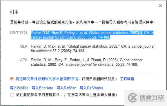 對于外文文獻,可以借助谷歌學術進行偷懶——在谷歌學術中搜索文獻的標題,在得到的結果中找到對應的文獻,直接點擊"引用"即可獲得參考文獻的引用格式。