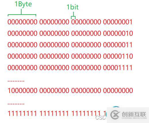 一個(gè) 整型int 在x86系統(tǒng)中占用4個(gè)字節(jié)的空間, 1個(gè)字節(jié)(Byte)等于8個(gè)比特位(bit), 所以一個(gè)int類型寫(xiě)成一個(gè)由32個(gè)二進(jìn)制位組成的數(shù)列: