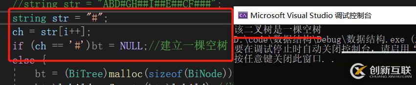 if (ch == '#')bt = NULL;//建立一棵空樹