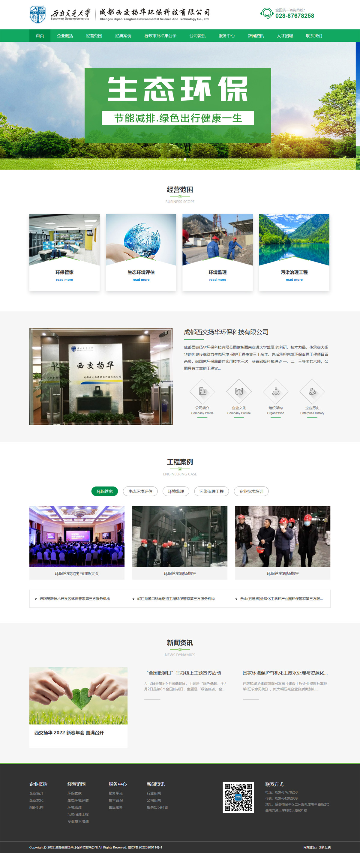 成都西交揚華環??萍加邢薰疽劳形髂辖煌ù髮W雄厚的科研、技術力量,傳承交大揚華的優良傳統致力生態環境保護工程事業三十余年。先后承擔完成環保治理工程項目百余項,獲國家環保局最佳實用技術三次,獲省部級科技進步 一、二、三等獎共六項。公司具有豐富的工程實踐經驗。