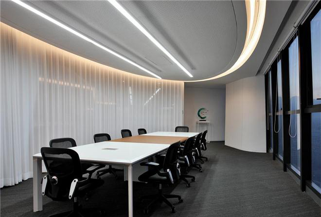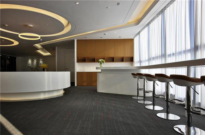 深素色環(huán)保地毯+石膏板面飾涂料以及玻璃的應(yīng)用,使空間干凈利落,簡練而精細(xì)的工藝標(biāo)準(zhǔn)在達(dá)到低碳性與經(jīng)濟(jì)性的基礎(chǔ)上仍能保持高品質(zhì)的完成度。