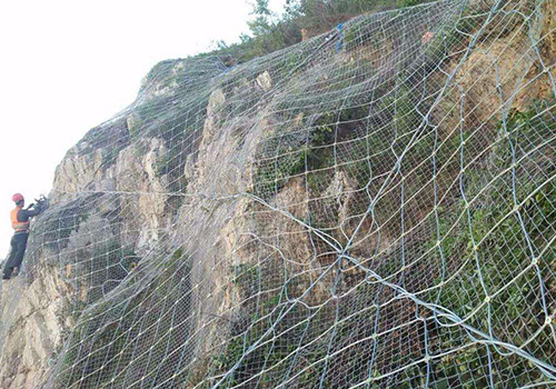 和支撐繩固定方式將金屬柔性網覆蓋在具有潛在地質災害的坡面上,