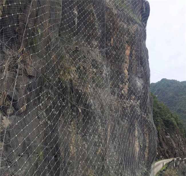 工作范圍,主動(dòng)邊坡防護(hù)網(wǎng)是指在存在地質(zhì)災(zāi)害隱患的邊坡上,通過(guò)鋼絲繩錨桿或鋼筋鋪設(shè)、支撐繩固定等方式進(jìn)行覆蓋,以實(shí)現(xiàn)邊坡加固或限制落石移動(dòng)范圍的防護(hù)網(wǎng)。被動(dòng)防護(hù)系統(tǒng)是一種防護(hù)網(wǎng)。它利用錨桿、鋼柱、支撐繩和觀測(cè)索,以一定角度在坡面上安裝金屬柔性網(wǎng),形成石網(wǎng),實(shí)現(xiàn)對(duì)泥沙中固體物質(zhì)的攔截。