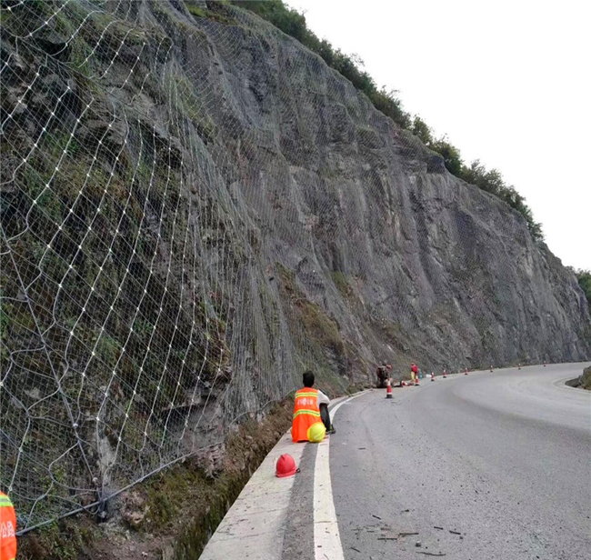 為植物的生長供應條件,也防止了坡體表面的進一步風化;另一種是阻攔功用,把金屬柔性規劃的防護網用鋼柱等錨固體系直立安裝在簡單呈現落石、滑坡等方位,相當于一面擋墻,阻攔落石。安裝前期準備工作能否必要,施工前需將基座設備部位根底的浮石及掩蓋層收拾完整收拾選用人工協作小型工用具。