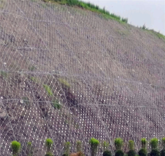 SNS邊坡防護網是通過錨桿和支護繩索對每個網塊施加預緊力,使每個網塊在坡面上張拉,然后對坡面危巖落石施加一定的預緊壓力,從而提高危巖的穩定性。性,防止危險落石的發生。.系統各部件相互連接,集成在各獨立保護區內。一旦巖體發生局部變形或位移,系統將不再局部工作,而是整體工作。