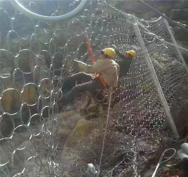 為主的式柔性攔石網(wǎng),一般裝置在斜坡方位,用于阻攔斜面坡上的滾落石以防止其損壞維護的目標,因而有時也稱為攔石網(wǎng);當設置于泥石流區(qū)內(nèi)時,便可構成阻攔泥石流體內(nèi)固體大顆粒的柔性格柵壩。具有高柔性,高防護強度,易鋪展性